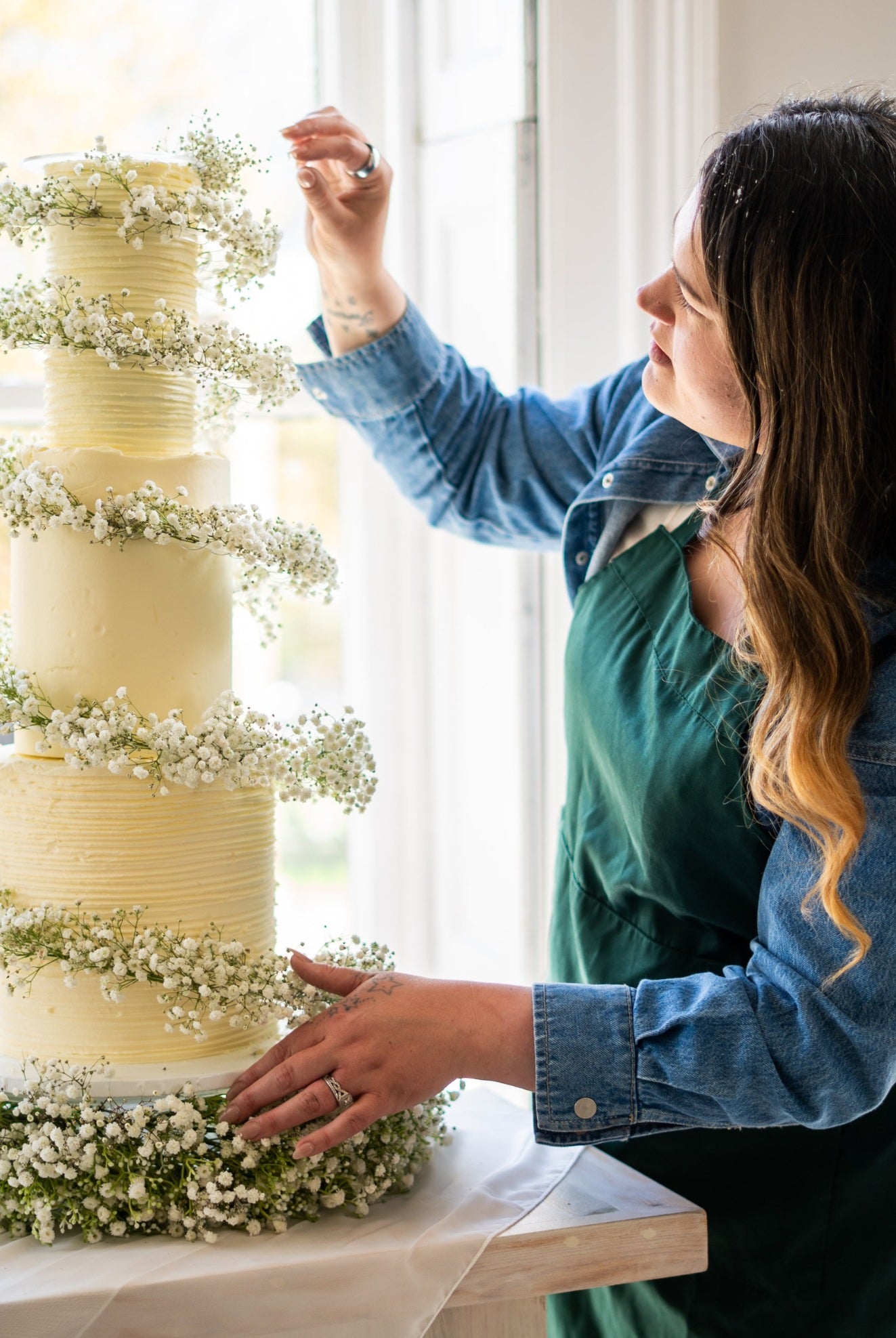 If you're photographing a wedding cake, for instance, a few flowers or greenery can enhance the image without taking away from the design.