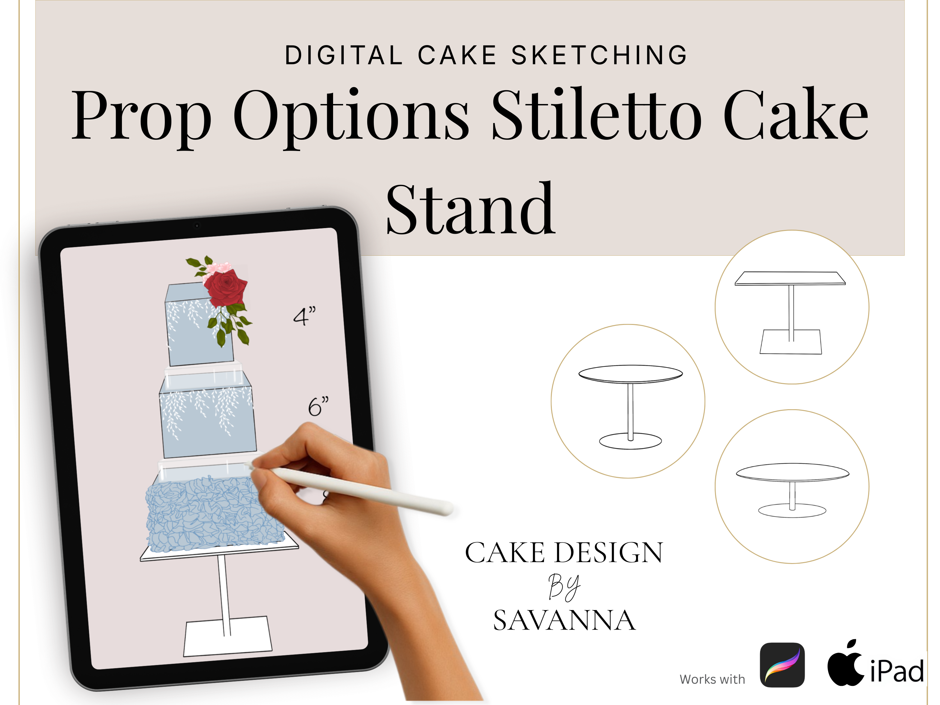 Cake Design Procreate Stamps: Prop Options Stiletto Cake Stands