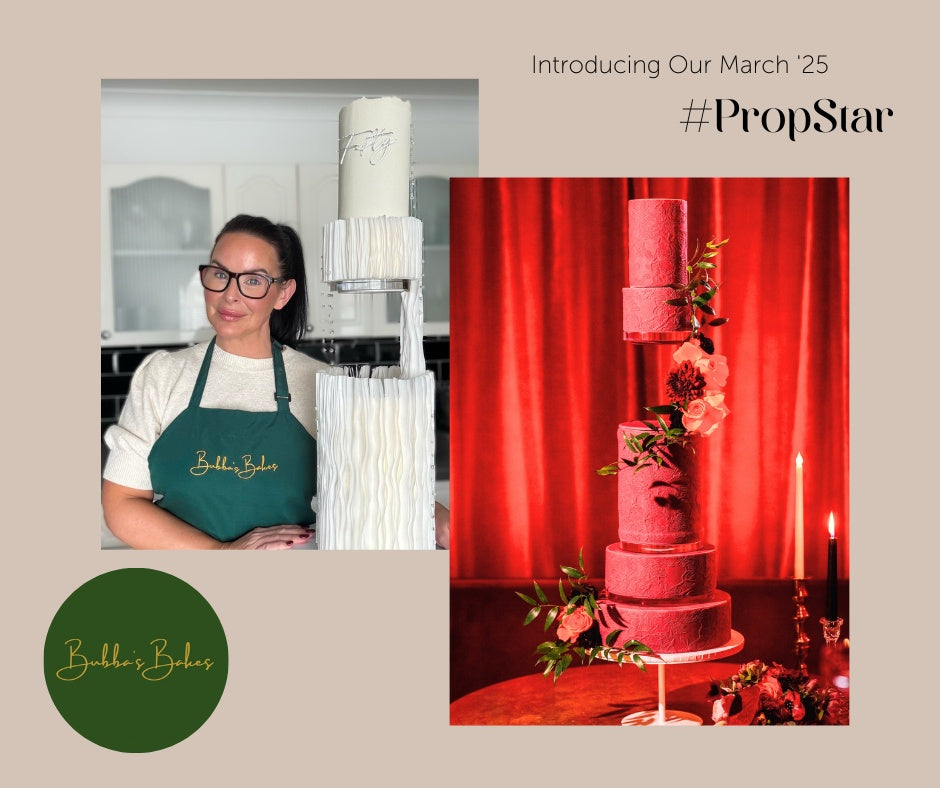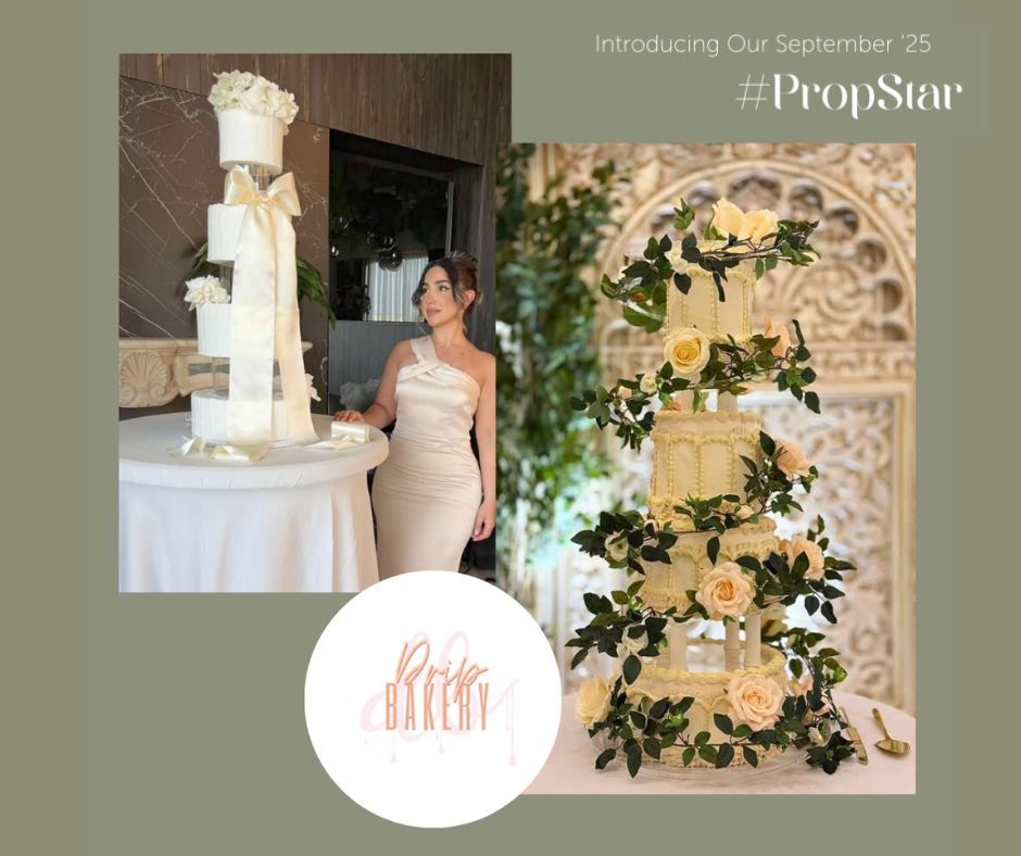 This month’s Prop Star goes to Priscilla’s Cakes, a leading name in Australia’s luxury wedding cake scene. Known for her elegant, floral-driven designs, Priscilla creates cakes that are timeless, romantic, and full of intricate sugar artistry. Her delicate sugar flowers and flawless finishes elevate each design into a true statement piece. We love how she incorporates our Prop Options stands to showcase her creations with effortless grace, making every cake feel like a centrepiece in its own right. Priscilla’s artistry blends sophistication and detail, making her the perfect choice for this month’s Prop Star.
