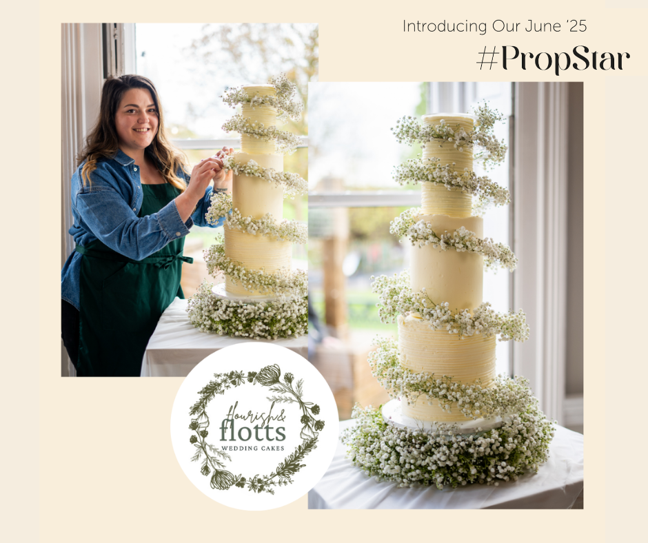 Flourish & Flotts — a Yorkshire-based bakery known for its exquisitely rustic wedding cakes. Crafted using high-quality, locally-sourced ingredients, each design reflects the natural beauty of the countryside, often adorned with seasonal blooms and personal touches. This month’s winning creation beautifully showcases Flourish & Flotts’ signature buttercream style with our new Cake Spiral — elegant, artisanal, and utterly romantic. A perfect choice for couples seeking charm, flavour, and originality on their big day.
